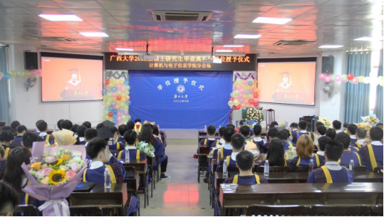 2022年6月24日上午,广西大学头号玩家官网登录入口2022届硕士研究生毕业典礼暨学位授予仪式在学院214报告厅分会场举行。学院领导、系主任和副主任、党支部书记、辅导员、班主任、教师代表以及2022届毕业研究生出席。本次毕业典礼暨学位授予仪式采用线上线下相结合的方式进行。