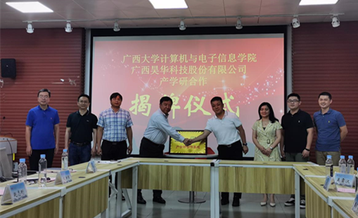 为推进计算机信息技术协同创新、成果转化应用和人才培养,以学科专业发展和社会需求为导向,以“产学研用”融合为途径整合资源,广西大学头号玩家官网登录入口与广西昊华科技股份有限公司于2022年7月14日举行产学研合作揭牌仪式与座谈交流会。