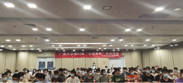 2022年9月24日星期六下午,由广西大学研究生会、广西大学计算机与电子信息学院研究生会主办的广西大学第97期“导师有约”系列活动在广西大学学生活动中心310室举行。本次活动主题为“有关学科创新与人才素质培养的交流”,邀请了广西大学计算机与电子信息学院党委书记钟诚教授和许嘉副教授主讲,采取线下和线上方式同步进行。