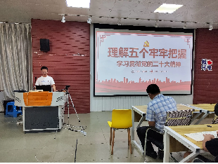 首先,由党支部书记邓珍琪同志领学党的二十大报告全文。他要求支部全体党员要把学习贯彻党的二十大精神作为当前和今后一个时期重大政治任务,原原本本、逐字逐句学习报告原文,深刻领会报告的丰富内涵和思想精髓,切实把思想和行动统一到党中央决策部署上来。