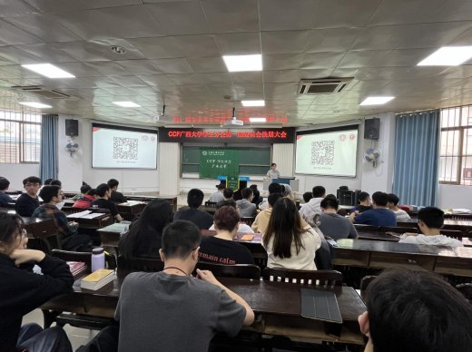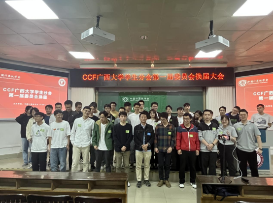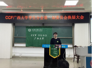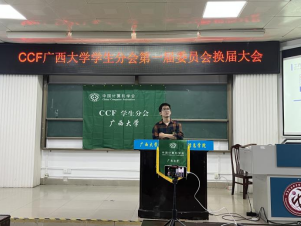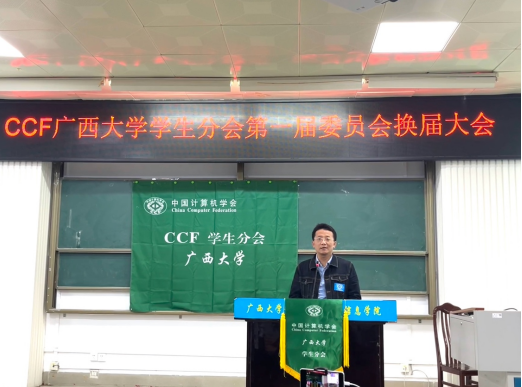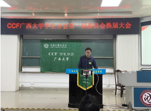 2022年11月25日下午,中国计算机学会CCF广西大学学生分会(以下简称“分会”)第一届委员会换届大会在广西大学头号玩家官网登录入口214报告厅顺利举行。分会督导主任、CCF杰出会员吕品副研究员受邀参加本次活动。100多位分会学生会员通过线下、线上的方式参与本次大会,大会由分会候任主席舒雅婷主持。