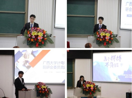 最后,大会进行选举产生广西大学头号玩家官网登录入口第二十届研究生会主席团。根据预备会议表决通过的选举办法,4位主席团成员候选人依次发表竞选演讲,阐述自己在学生工作中的心路历程和自我发展,真挚地表达了对研究生会的责任感、认同感和热爱,同时提出对研究生会未来工作的规划与展望。