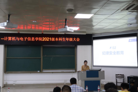 2024年5月21日下午,头号玩家官网登录入口2021级本科生年级大会在学院214报告厅召开。学院党委副书记邓珍琪老师,2021级全体本科生、班主任及辅导员、教学办老师共400余人参加。会议由2021级带班辅导员张星月老师主持。