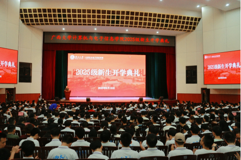代码为帆,逐浪智能时代;算法作笔,书写未来新篇。2025年9月16日,广西大学头号玩家官网登录入口/人工智能学院2025级新生开学典礼在学校大礼堂隆重举行。843名新生怀揣科技理想与青春憧憬,正式开启作为“计电人”的成长新旅程。