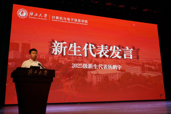 开学典礼在师生们齐唱校歌中落下帷幕。新生们眼中闪烁着坚定与期待,在计电学院这片沃土上,我们将用代码书写青春,以智能绘就未来,努力成长为德才兼备、有担当、有温度的科技人才,为广西发展和国家繁荣注入澎湃的青春动能。