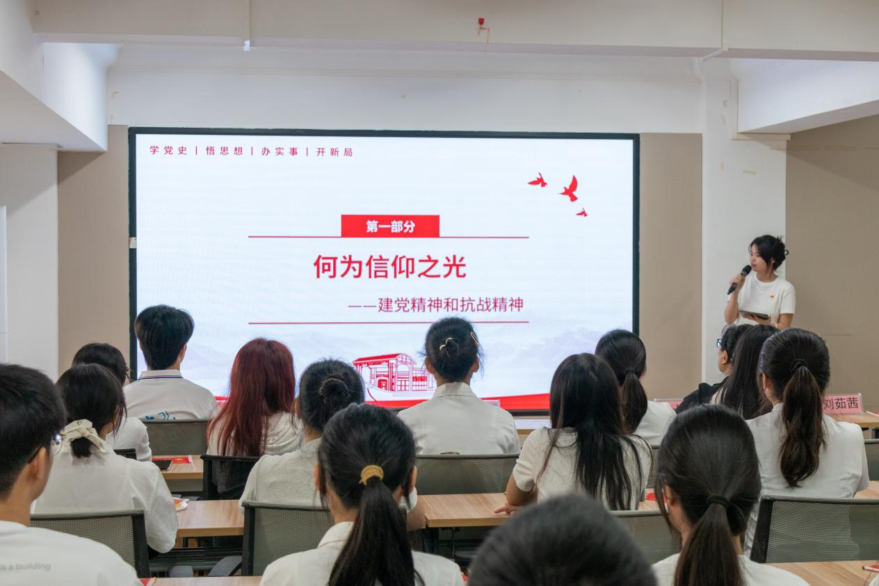 为深入学习贯彻习近平新时代中国特色社会主义思想,引导广大青年学子从中国共产党人的宝贵精神财富中汲取智慧、凝聚力量,坚定理想信念,砥砺青春担当,2025年9月30日,我院在西21栋“一站式”学生社区16号活动室举办了“大学生成长吧——中国共产党人精神谱系”宣讲活动。此次活动邀请师生代表同台宣讲,围绕伟大建党精神开展宣讲。