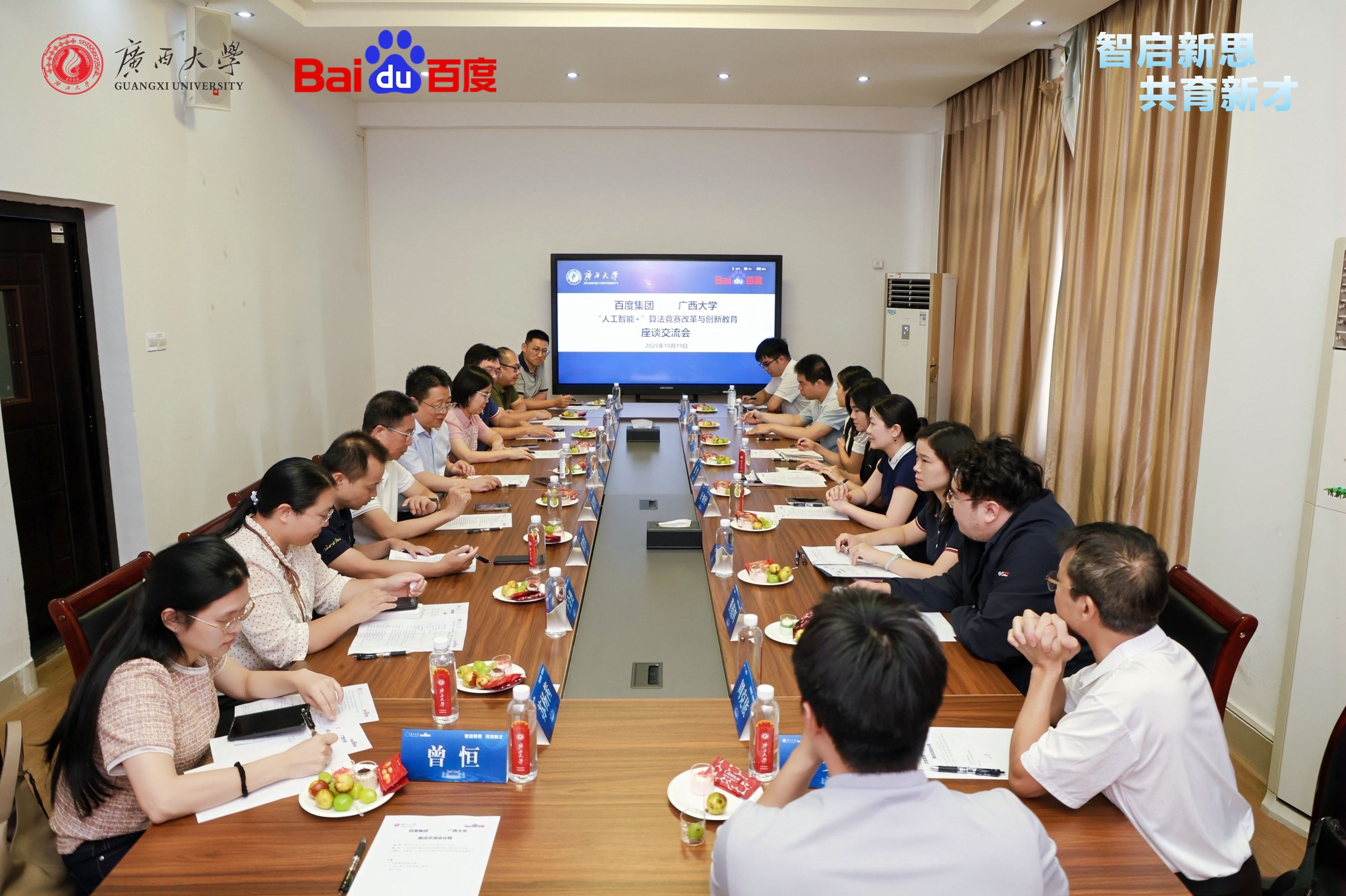 2025年10月19日,广西大学-百度集团“人工智能+”算法竞赛改革与创新教育研讨会在我院召开。研讨会以“智启新思 共育新才”为主题,汇聚多方专家,共同探讨人工智能时代下的人才培养路径。