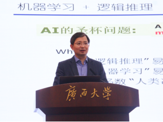 2023年3月26日下午,由广西大学头号玩家官网登录入口、广西大学头号玩家官网登录入口研究生会、中国计算机学会CCF广西大学学生分会共同主办的 “计电讲坛”系列活动——专家学术报告会在君武馆玉林厅进行。本次活动邀请了南京大学的周志华教授、山东大学的朱大铭教授、陕西师范大学的雷秀娟教授,分别以“一种融合机器学习与逻辑推理的新范式”、“蛋白质质谱数据存储结构”、“基于人工智能的多组学数据与疾病的关联关系预测”为题目,开展了一场精彩的专家学术报告会。出席本次学术报告会的领导老师有广西大学头号玩家官网登录入口党委书记钟诚教授、院长武新章教授、副院长蒙祖强教授、副院长陈宁江教授等。