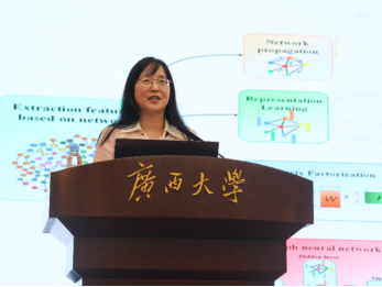 雷秀娟教授以“基于人工智能的多组学数据与疾病的关联关系预测”为题的报告。雷教授以一首风趣幽默的打油诗开场,赢得了同学们热烈的掌声。雷教授先是为我们讲解了多组学与疾病的关联关系,展示了多组学与疾病的关联数据库,介绍了生物相似性网络的建设方法和特征提取方法。随后,雷教授向我们分享了她们团队利用群智能优化、矩阵补全、机器学习等人工智能方法对微生物、代谢物、circRNA等组学数据和疾病的关联关系预测,circRNA与RBP结合位点预测的研究工作。最后雷教授介绍了网络模型、精准医疗、药物研发等未来研究方向。