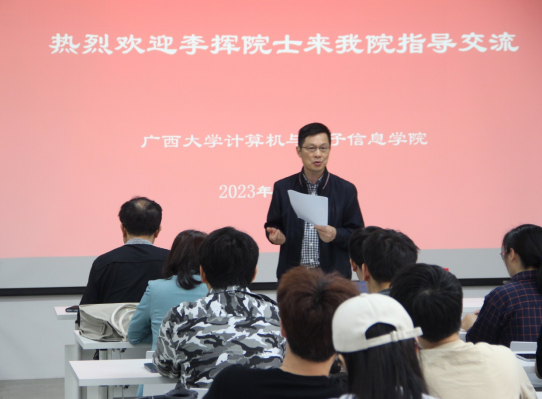 2023年4月12日下午,由广西大学头号玩家官网登录入口研究生会主办的 “计电讲坛”系列活动第5期在头号玩家官网登录入口一楼报告厅进行。本次活动邀请了北京大学的李挥教授,以“多边共管天地一体化卫星互联网高安全体系”为题目,开展了一场精彩的学术讲座。