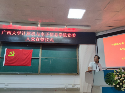 2022年7月1日下午,在中国共产党成立101周年、香港回归祖国25周年这个值得庆祝的日子,广西大学头号玩家官网登录入口党委在学院214报告厅,为156名预备党员举行隆重的入党宣誓仪式。学院党委书记钟诚同志、学院党委副书记邓珍琪同志、以及近期加入党组织的预备党员参加宣誓仪式。宣誓仪式由学院学生党建工作委员会秘书长程雨晨同志主持。