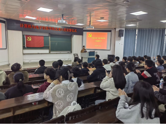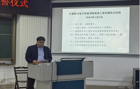 2024年1月5日,头号玩家官网登录入口党委在学院214报告厅举行入党宣誓仪式。本次会议由研究生第一党支部副书记韦惜旖同志主持,头号玩家官网登录入口党委副书记邓珍琪同志、专职组织员薛金凤同志、研究生第一党支部支委姚露姗同志以及新发展的54名党员同志参加会议。