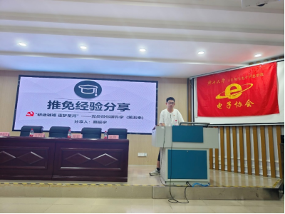 会议第二项,经验分享环节,邀请了4位同学分享自己的保研、考研经验。首先是路振宇同学分享保研经验,他以专业成绩第一名成功推免至东南大学,结合自身的学习经验,他将推免政策、推免注意事项等逐一和同学们分享。接着是张胜同学分享保研经验,他推免至华南理工大学,结合自己的学习和竞赛情况,他分享自己如何从推免边缘到逆袭上岸的经验。第三是陈聪同学分享考研经验,作为广西大学考研学生代表,他就如何备战考试、如何选择专业及如何选择学校与同学们分享。最后是出君儒同学分享研究生支教团经验,作为广西大学第十一届研究生支教团的成员,他为同学们详细解读研究生支教团的保研政策,并结合自己在支教团的工作感受,为大家揭开研究生支教生活的神秘面纱。