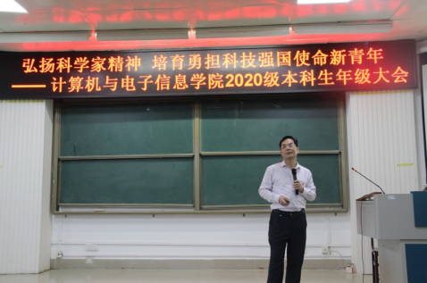 2023年3月10日晚上,头号玩家官网登录入口在214报告厅组织召开“弘扬科学家精神 培育勇担科技强国使命新青年”为主题的2020级本科生年级大会。学院党委书记钟诚教授、学院党委副书记邓珍琪老师、学院团委书记莫国志老师、学院教学办甘瑜萍老师及2020级全体本科生参加会议。会议由兼职辅导员张小银同志主持。