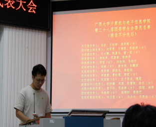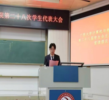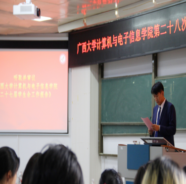 大会在庄严的国歌声中拉开序幕。首先进行第一项议程:学院第二十七届学生会主席团成员刘凯同学作《广西大学头号玩家官网登录入口第二十七届学生会工作报告》。报告总结了过去一年学院学生会取得的成绩和进步,指出学院学生会要在学院党委领导下,紧跟时代要求,树立良好信念,坚持深化改革,强化内部建设。