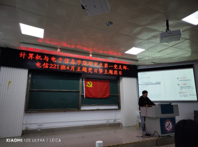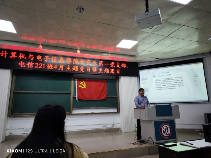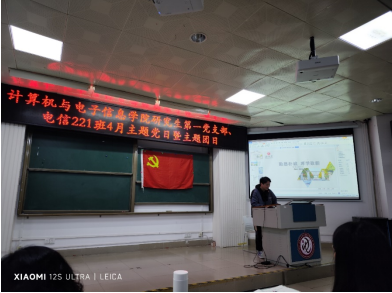 2023年4月25日,头号玩家官网登录入口研究生第一党支部、电信类221班在学院214报告厅,共同组织开展2023年4月份主题党日和主题团日活动。本次活动由党支部书记邓珍琪同志主持,研究生第一党支部全体党员和电子信息类221班全体同学参加。