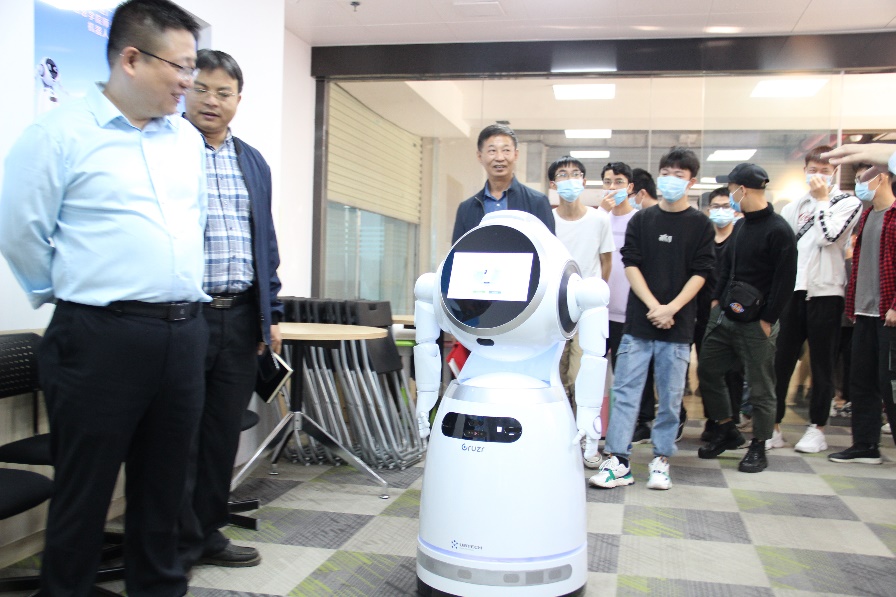 首先,大型商用机器人Cruzr带领学院师生参观公司,老师和同学们都为Cruzr的精彩讲解所吸引,并不断响起热烈的掌声。
