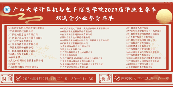 为推动头号玩家官网登录入口毕业生更高质量、更充分就业,2024年4月9日,我院在东校园大学生活动中心一楼成功举办2024届毕业生春季双选会。广西区内外41家企事业单位、校友企业为我院毕业生提供900多个就业岗位,我院500余名毕业生积极参加,现场人头攒动,气氛热烈。